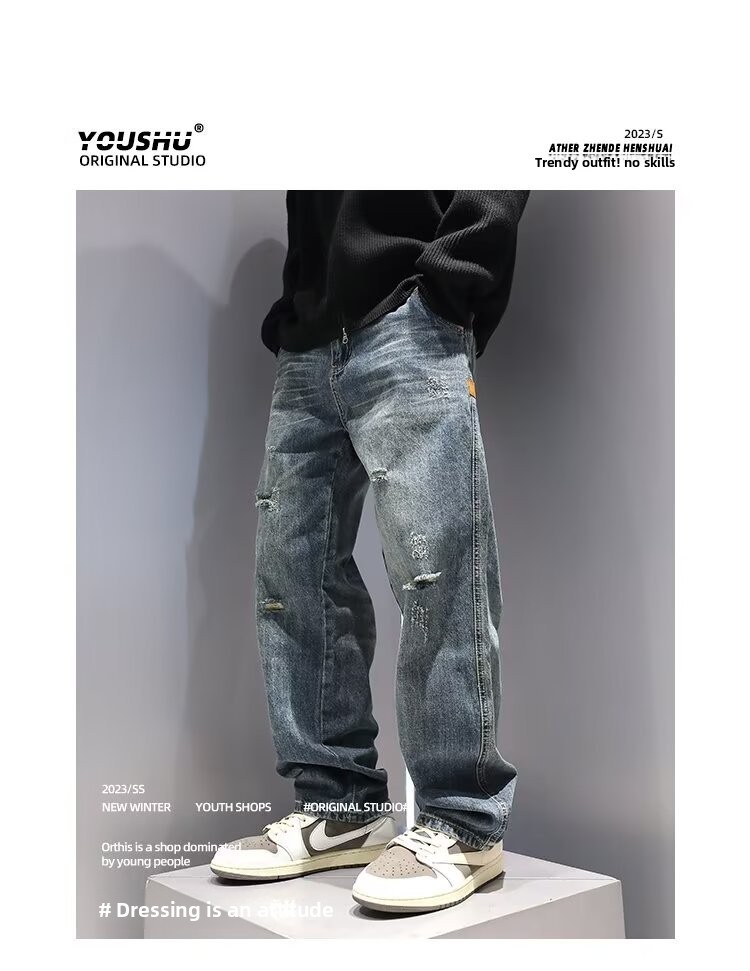American fashion brand: Stylish and trendy jeans with a washed and distressed look.